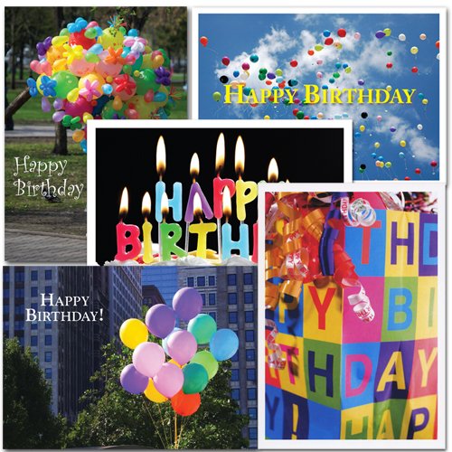 Birthday Greeting Card Assortment, box of 10 cards and envelopes, 2 each of 5 different designs Overviews